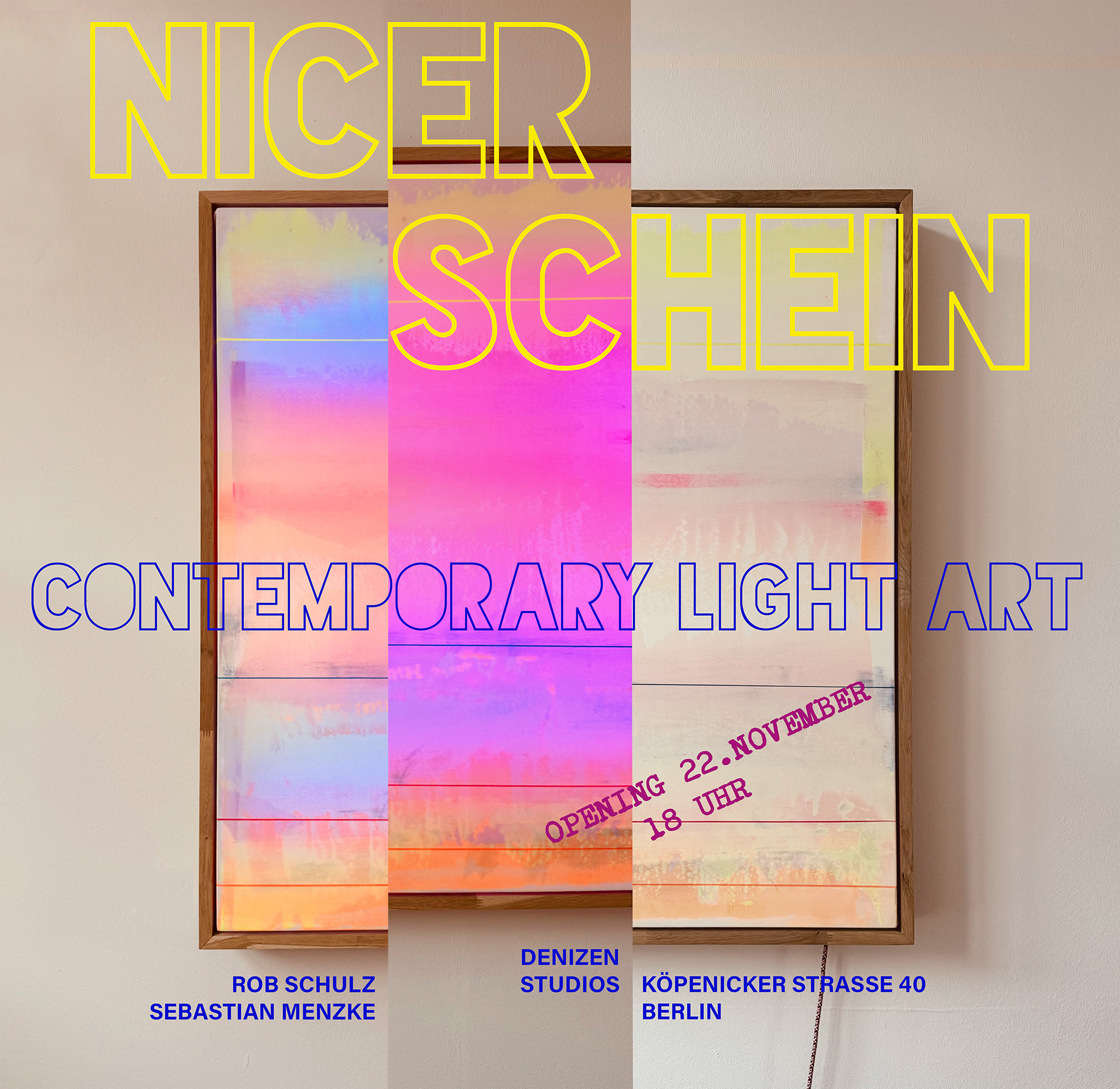 Join us for an exclusive pop-up vernissage showcasing contemporary light art in a unique setting. Experience "Nicer Schein" on November 22nd, starting at 6 PM, at Denizen Studios, Köpenicker Straße 40, Berlin.
